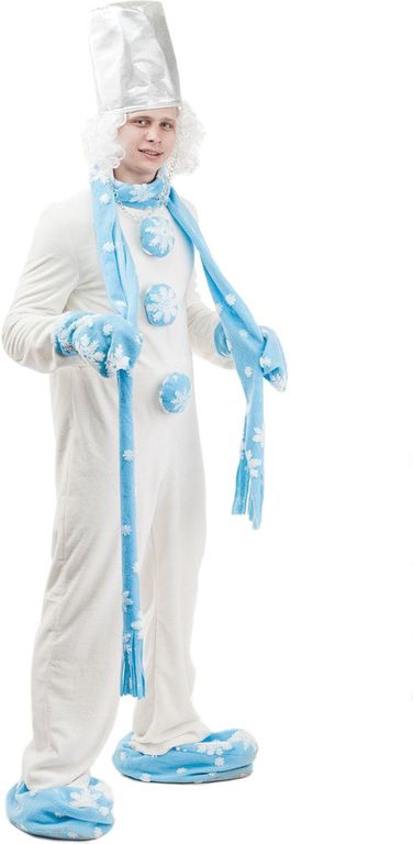 Костюм снеговика прокат. В костюме весёлого снеговика вы будете самым желанным гостем на новогодней празднике! Полностью укомплектованный костюм снеговика поможет вам преобразиться в забавного сказочного героя в считанные минуты! Материал шапки напоминает жестяное ведро, традиционный головной убор снеговиков. Нос-морковка крепится при помощи резинки. Удобные тапочки выполнены в виде бахил, которые надеваются поверх обычной обуви. У нас в наличии один костюм снеговика СПб. Звоните