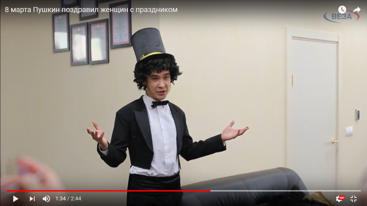 Классное оригинальное поздравление женщин на 8 марта! Александр Сергеевич или любой другой поэт придет к вам в офис и прочитает стихи и галантно и интеллигентно поздравит женщин с праздником!