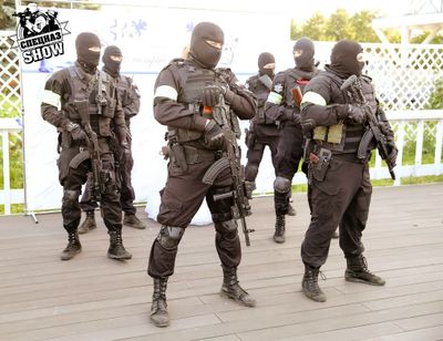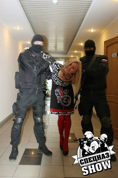 Ничего не предвещало беды, как вдруг в офис влетают люди в масках. Мужчин собирают в одном помещении и «начинают оформлять» пока едет автобус, женщин можно пока отвезти в другое помещение где они смогут подготовить стол, подарки и прочее. Развязку на розыгрыш с ОМОНом мы придумаем под ваш коллектив.